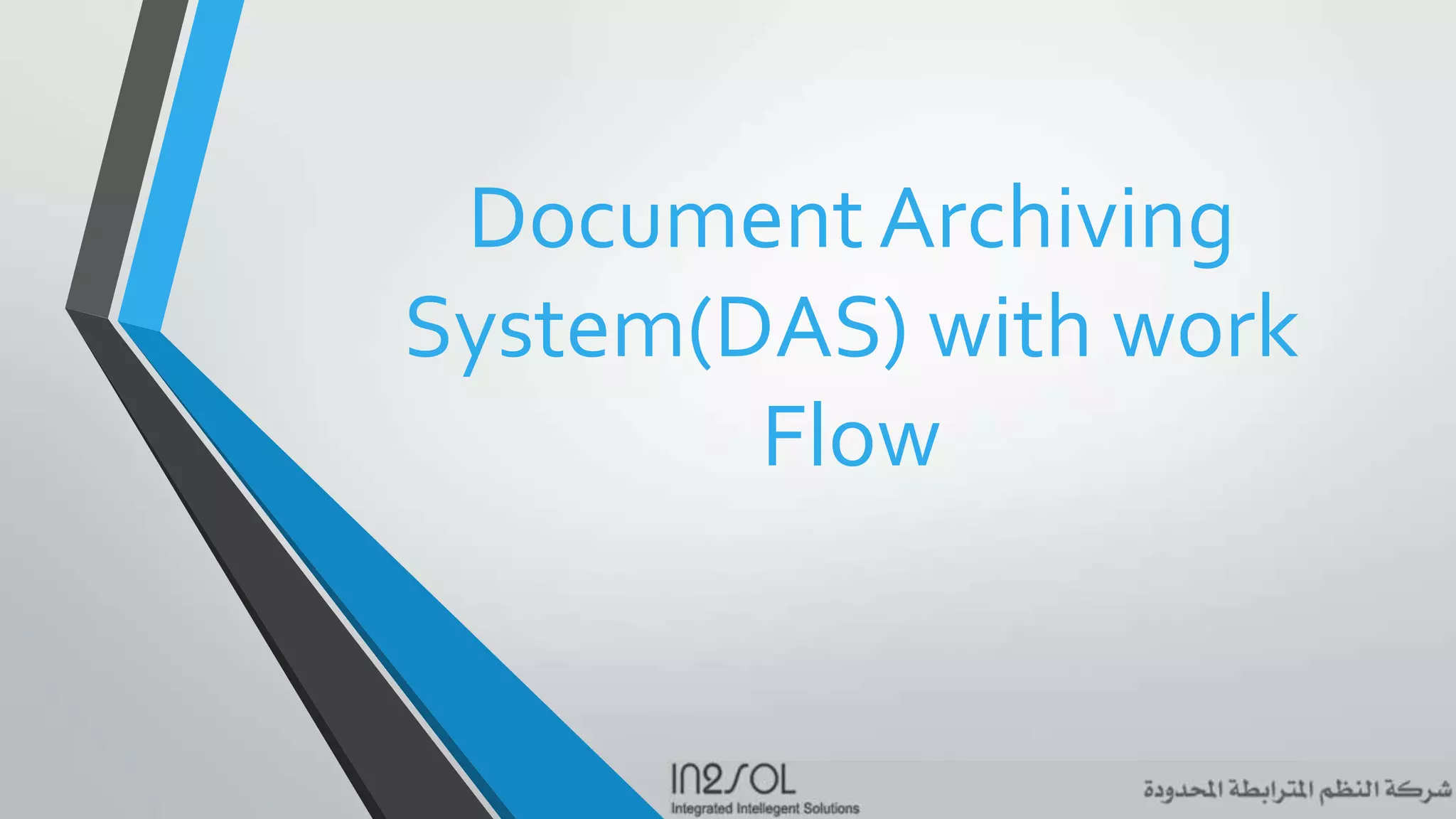 The Document Archiving System (DAS) facilitates the digital preservation of documents, allowing users to scan, upload, and manage files efficiently. Key features include unique barcode assignments, a user-friendly interface, permission controls, and comprehensive document management capabilities such as archiving, forwarding, and searching. Developed using .NET Framework with ASP.NET, the system enhances productivity while ensuring security and confidentiality of sensitive information.