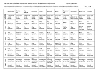 зүй Хими Биологи Физик Мэдээлэл зүй Технологи Англи хэл Орос хэл Явагдах хугацаа 12/01/2015 09:00 цагаас 27/02/2015 09:00 цагаас 15/01/2015 09:00 цагаас 15/01/2015 09:00 цагаас 19/01/2015 09:00 цагаас 20/01/2015 09:00 цагаас 14/01/2015 09:00 цагаас 14/01/2015 09:00 цагаас 23- 25/01/2015 09:00 цагаас 15/01/2015 09:00 цагаас 20/12/2014 09:00 цагаас СБД 1-р сургууль 1-р сургууль 6-р сургууль 58-р сургууль 45-р сургууль 2-р сургууль 16-р сургууль МЭХС 71-р сургууль 45-р сургууль 6-р сургууль СХД 12-р сургууль 105-р сургууль 67-р сургууль 65-р сургууль 9-р сургууль 42-р сургууль 67-р сургууль ИЦ-2-р ахлах 12-р сургууль ИЦ-1-р дунд сургууль ИЦ-2-р дунд сургууль БГД 28-р сургууль ЭУЦ-78-р сургууль 13-р сургууль 46-р сургууль 113-р сургууль 47-р сургууль 40-р сургууль 51-р сургууль 28-р сургууль 40-р сургууль 28-р сургууль БЗД 21-р сургууль 48-р сургууль 53-р сургууль БЗЦ- сургууль 84-р сургууль 111-р сургууль 97-р сургууль БЗЦ- сургууль 92-р сургууль 53-р сургууль 44-р сургууль ХУД 41-р сургууль 52-р сургууль 60-р сургууль 34-р сургууль 118-р сургууль 32-р сургууль Цэцээ Гүн цогцолбор 18-р сургууль 52-р сургууль 15-р сургууль 34-р сургууль ЧД 57-р сургууль 50-р сургууль 17-р сургууль 61-р сургууль 37-р сургууль 39-р сургууль 17-р сургууль 5-р сургууль 57-р сургууль 24-р сургууль 23-р сургууль НД Голомт цогцолбор 119-р сургууль 119-р сургууль ЭОЦ- сургууль 119-р сургууль ЭОЦ- сургууль Голомт цогцолбор ЭОЦ- сургууль ЭОЦ- сургууль Голомт цогцолбор Голомт цогцолбор БНД Боловсрол цогцолбор Боловсрол цогцолбор Боловсрол цогцолбор Гүн галуутай цогцолбор- сургууль Боловсрол цогцолбор Гүн галуутай цогцолбор- сургууль Боловсрол цогцолбор Боловсрол цогцолбор Гүн галуутай цогцолбор- сургууль Боловсрол цогцолбор Боловсрол цогцолбор БХД Хангай цогцолбор Хангай цогцолбор Хангай цогцолбор Хангай цогцолбор Хангай цогцолбор Хангай цогцолбор Хангай цогцолбор Хангай цогцолбор Хангай цогцолбор Хангай цогцолбор Хангай цогцолбор
