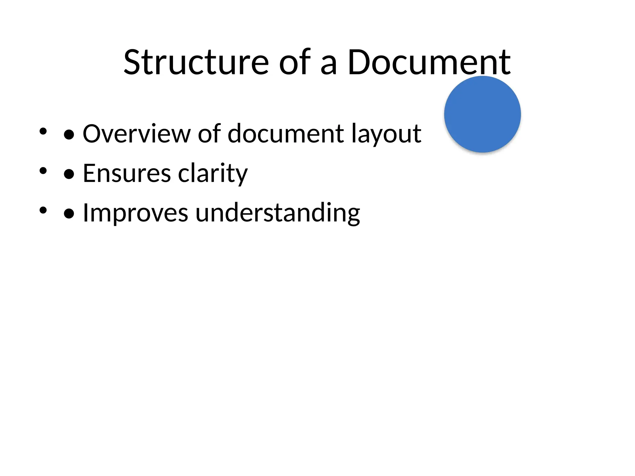Document • • Overview of document layout • • Ensures clarity • • Improves understanding