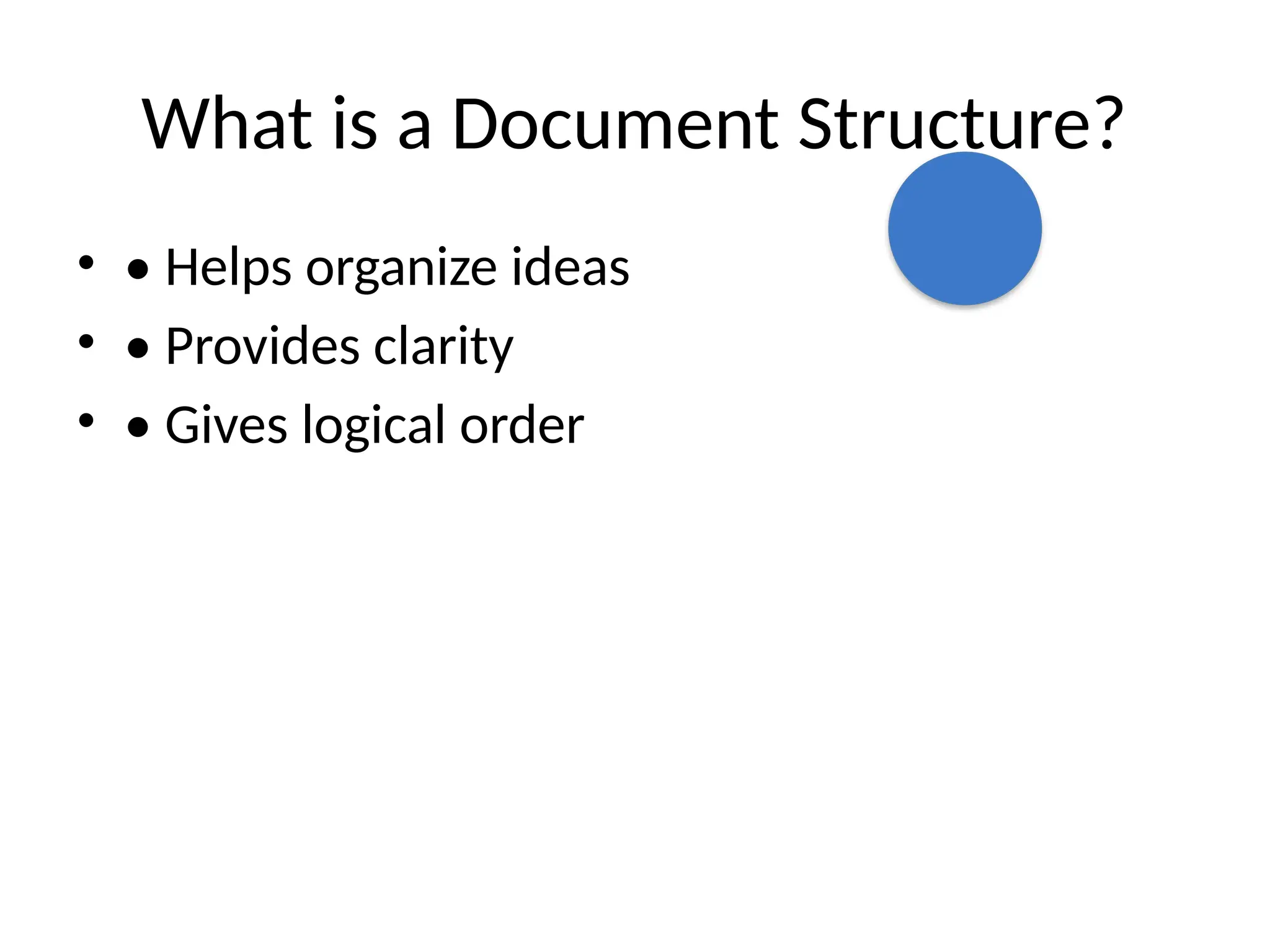 Document Structure? • • Helps organize ideas • • Provides clarity • • Gives logical order