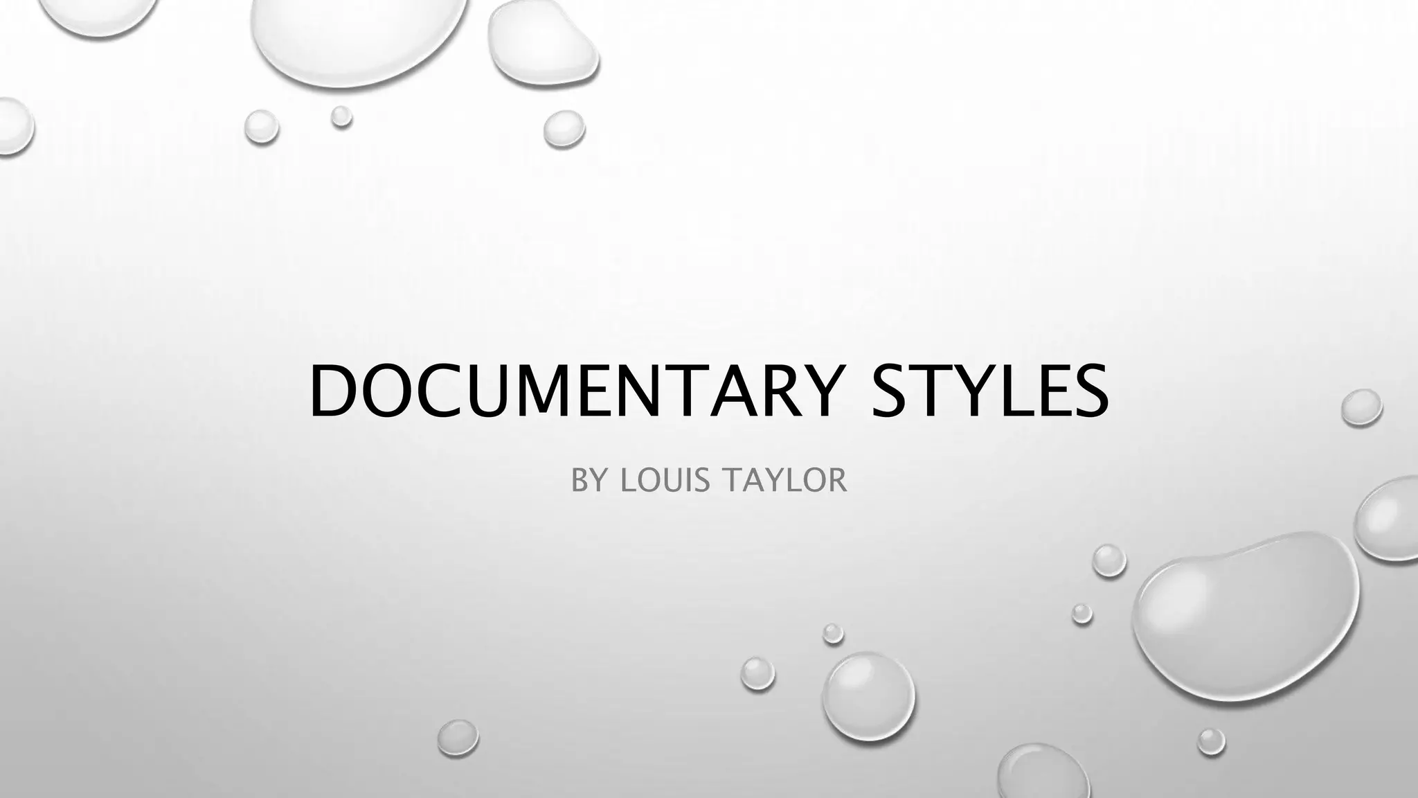 The document outlines four styles of documentaries: expository, observational, interactive, and reflective. The expository style uses voiceovers to explain scenes and is suited to historical or nature topics. The observational style films subjects without interaction "like a fly on the wall." Interactive documentaries involve direct interviews but may edit out questions. Reflective documentaries experiment with construction and make no attempt to hide the filmmaking process.