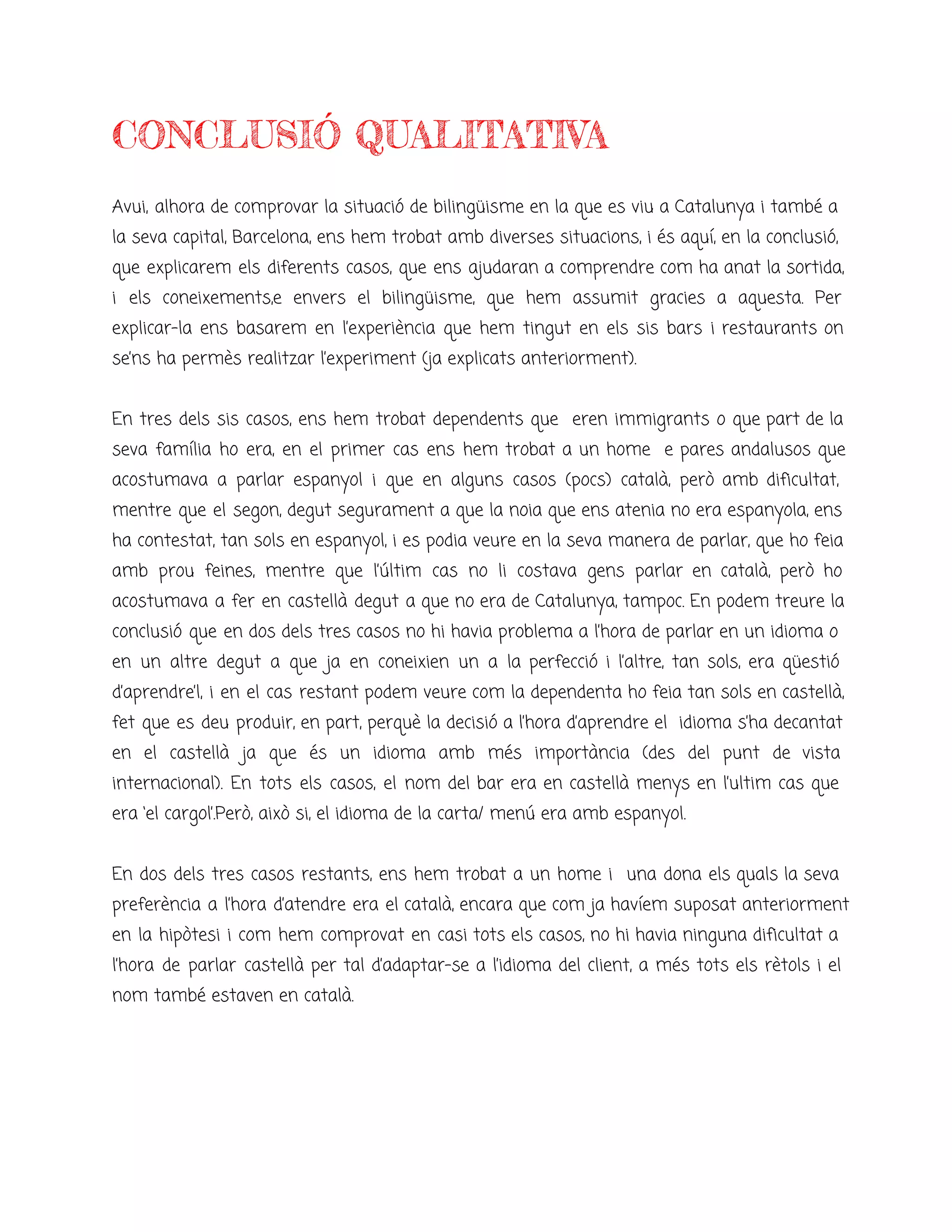 conclusió que en dos dels tres casos no hi havia problema a l’hora de parlar en un idioma o