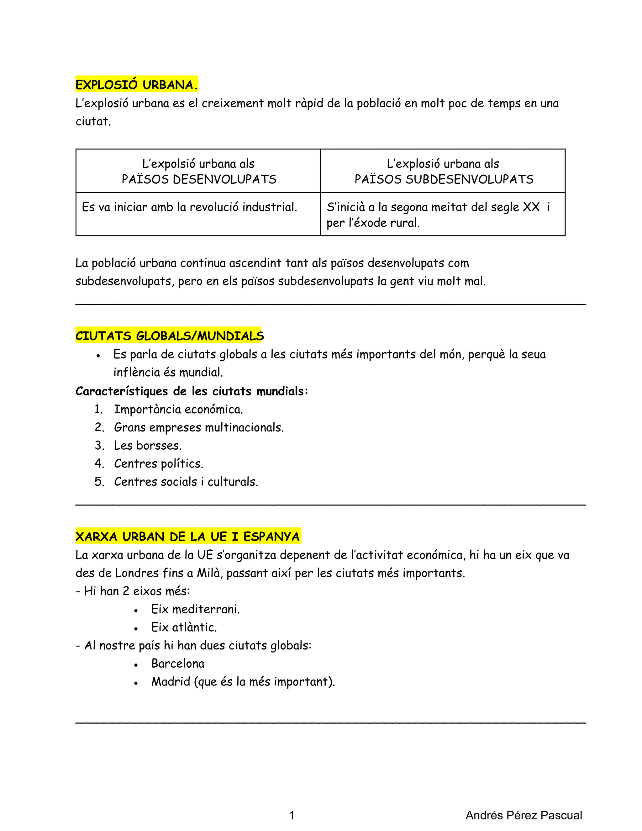 1. Una aglomeració urbana és l’expansió d’una ciutat principal que absorbeix a altres