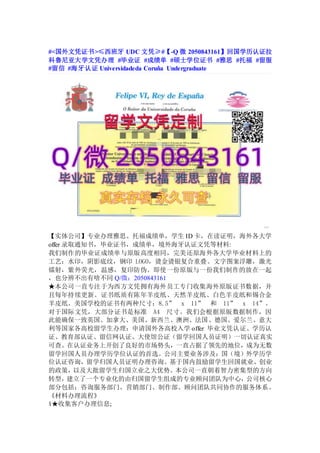 该文档介绍了一家专门办理西班牙拉科鲁尼亚大学文凭和相关认证的公司,提供多种学历和成绩单的制作服务,以高度还原的方式保证与原版相似。公司还提供针对留学归国人员的认证咨询服务,确保客户的隐私和交易安全,并拥有专业的顾问团队进行服务。该公司在学历认证市场中占据领先地位并不断扩展其业务。
