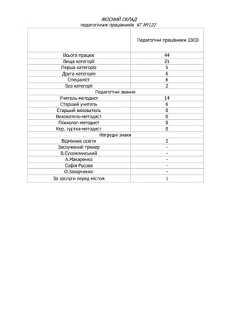 педагогічних працівників КГ №122