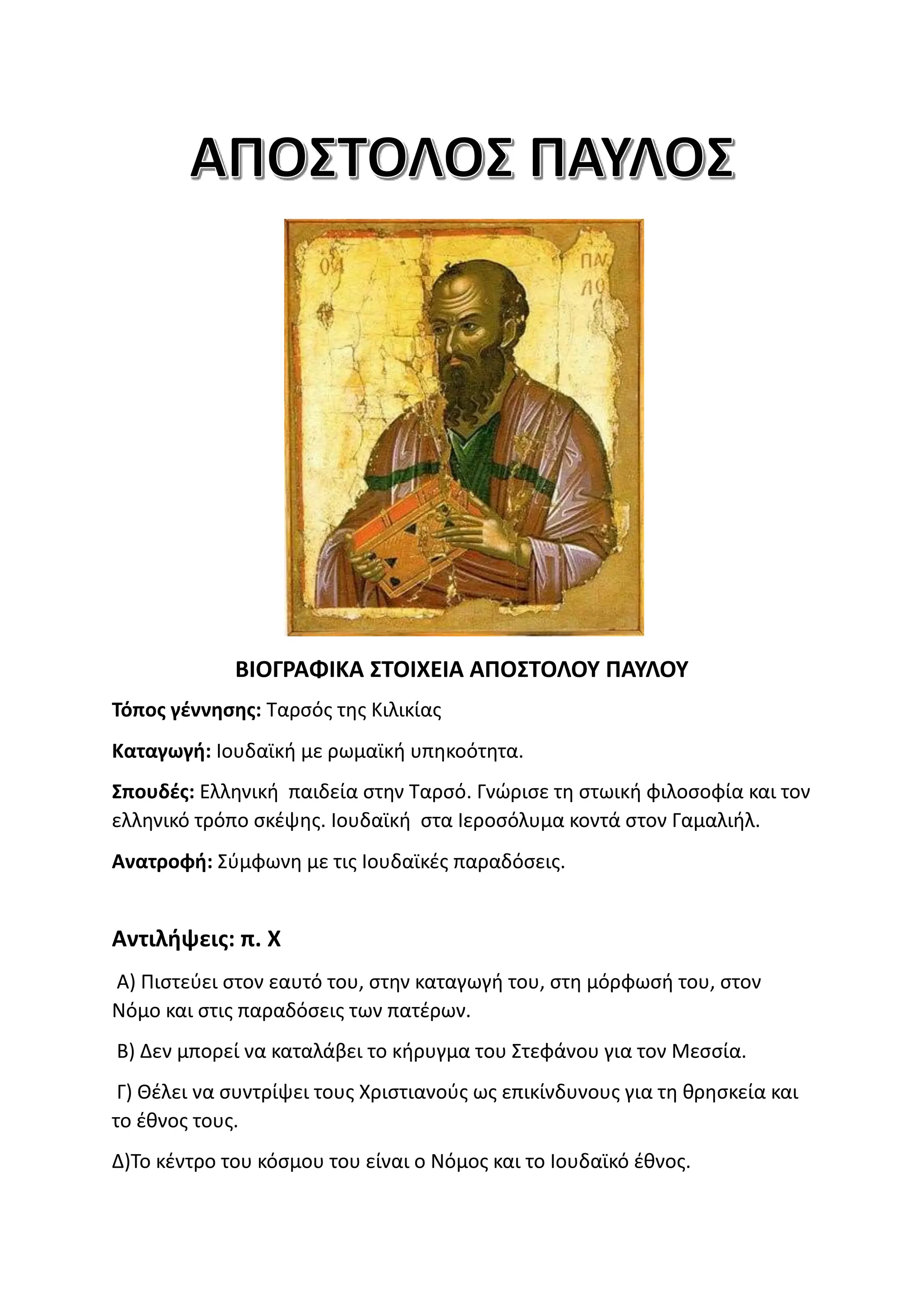 ΒΙΟΓΡΑΦΙΚΑ ΣΤΟΙΧΕΙΑ ΑΠΟΣΤΟΛΟΥΠΑΥΛΟΥ