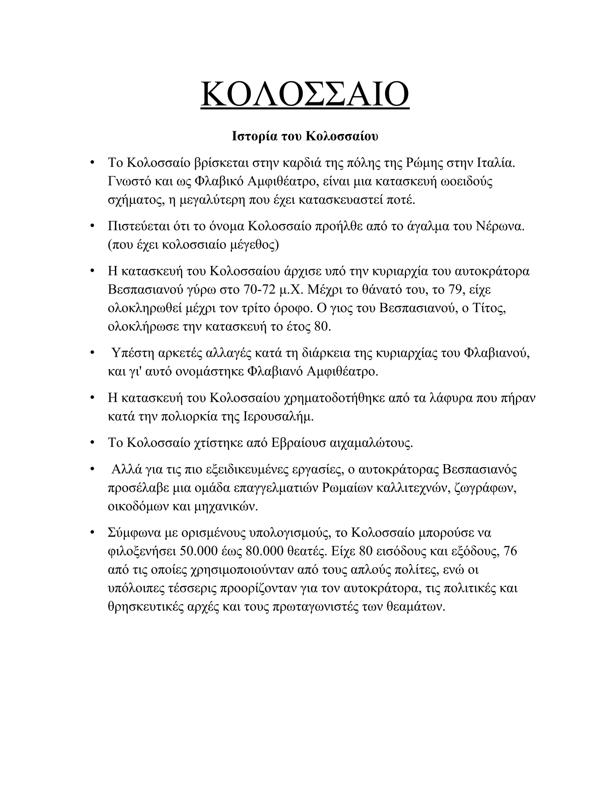 • Η κατασκευή του Κολοσσαίου χρηματοδοτήθηκε από τα λάφυρα που πήραν