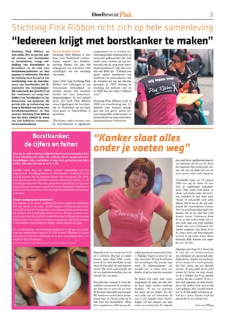 voorlichting over de risicofac- Anno 2009 mag Stichting Pink de donaties tot nu toe elk jaar