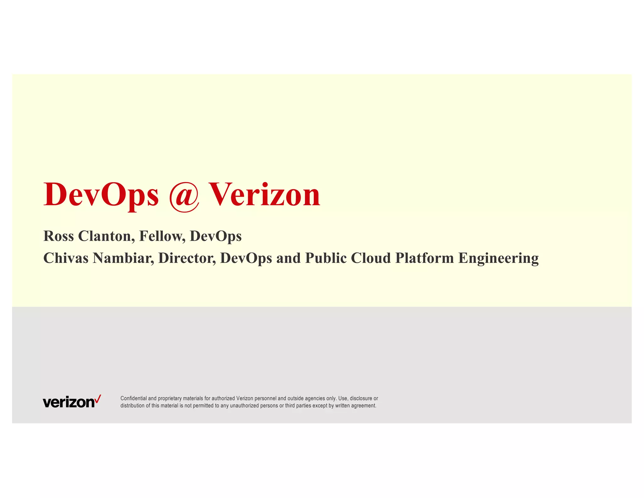 This document discusses Verizon's DevOps strategy and initiatives.