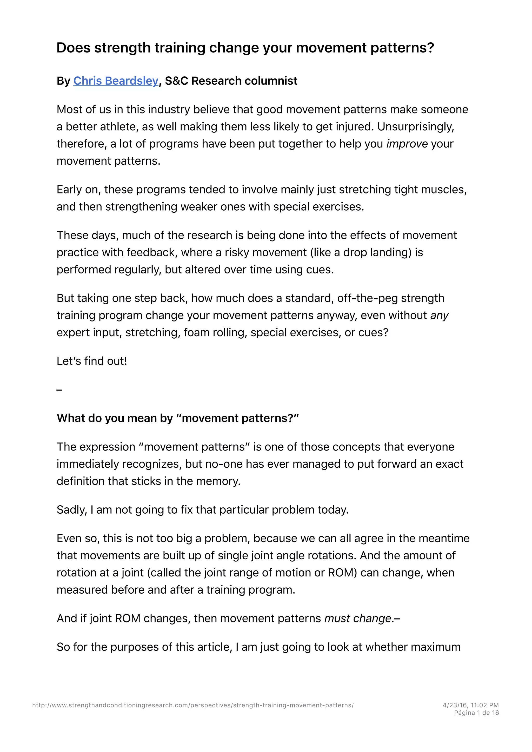 The document examines how standard strength training can influence movement patterns, particularly focusing on the knee and hip flexion during drop jumps. It highlights that while strength training may improve knee and hip flexion, thereby potentially reducing injury risk during landing, it generally does not affect knee valgus unless combined with feedback or practice. The research suggests that a standard strength training program can be beneficial, but more investigation is needed to understand its efficacy in altering movement patterns without additional interventions.