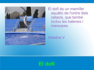 El dofí Eldofí és un mamífer aquàtic de l'ordre dels cetacis, que també inclou les balenes i marsopes.