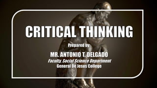 The document discusses the distinction between 'having' and 'doing' philosophy, emphasizing that critical thinking is an active process involving questioning and evaluating beliefs. It outlines qualities of critical thinkers and describes a variety of cognitive biases that impede effective thinking. The text concludes by highlighting the importance of developing critical thinking skills to navigate these biases.
