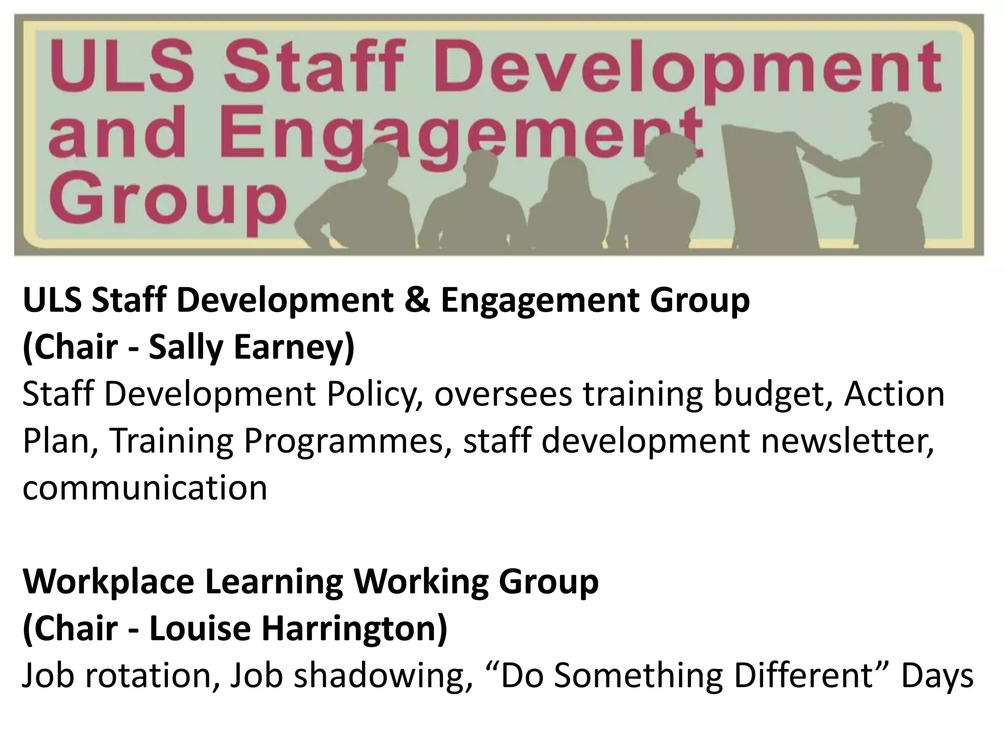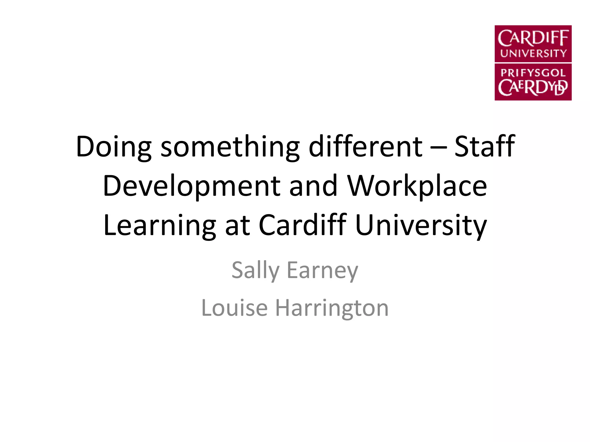 This document discusses workplace learning initiatives at Cardiff University. It began in 2005 with a pilot job rotation program involving 3 staff pairs rotating roles for 6 weeks. This helped improve skills and relationships. It later expanded to include Do Something Different days, where staff spend a day in another department, and job shadowing. These initiatives aim to help staff learn new skills, build relationships across the university, and increase job satisfaction. They have been popular programs that the document suggests could continue expanding to involve more areas of the university.
