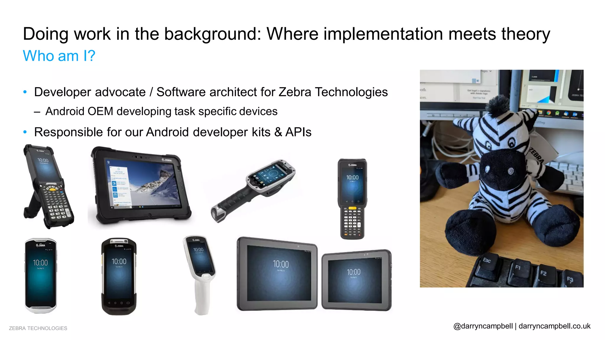 The document discusses different approaches for performing background tasks on Android devices in various usage scenarios. It describes three customer situations - a warehouse device tracker, a device OS update system, and a healthcare task assignment system. For each case, it outlines the initial concept, challenges with that approach, and the final concept using Android's recommended solutions like WorkManager, Firebase Cloud Messaging, and partial wake locks to allow tasks to run reliably in the background while minimizing battery usage.