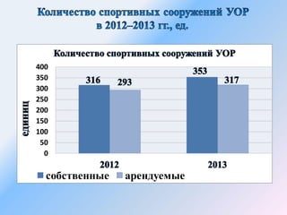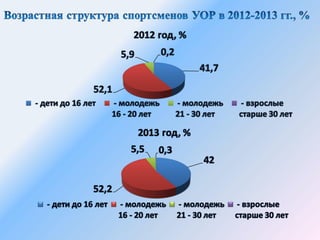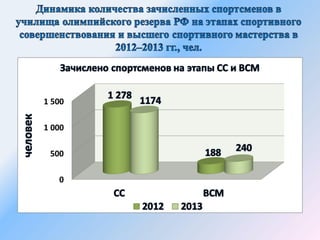 Документ представляет анализ и рекомендации по совершенствованию деятельности училищ олимпийского резерва (УОР) в России. УОР является учреждением, основным направлением которого является подготовка спортивного резерва и обучающихся по видам спорта. Основные задачи включают организацию тренировочного процесса, обеспечение питания и медицинского сопровождения, а также внедрение инновационных технологий в спортивную подготовку.