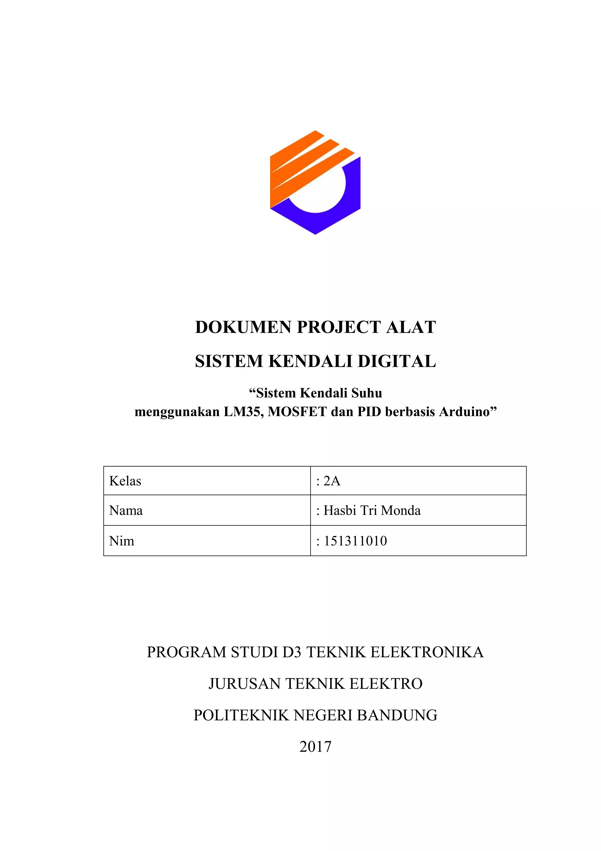 Dokumen b100 b600 project mandiri sistem kendali suhu menggunakan lm35, mosfet dan pid berbasis arduino