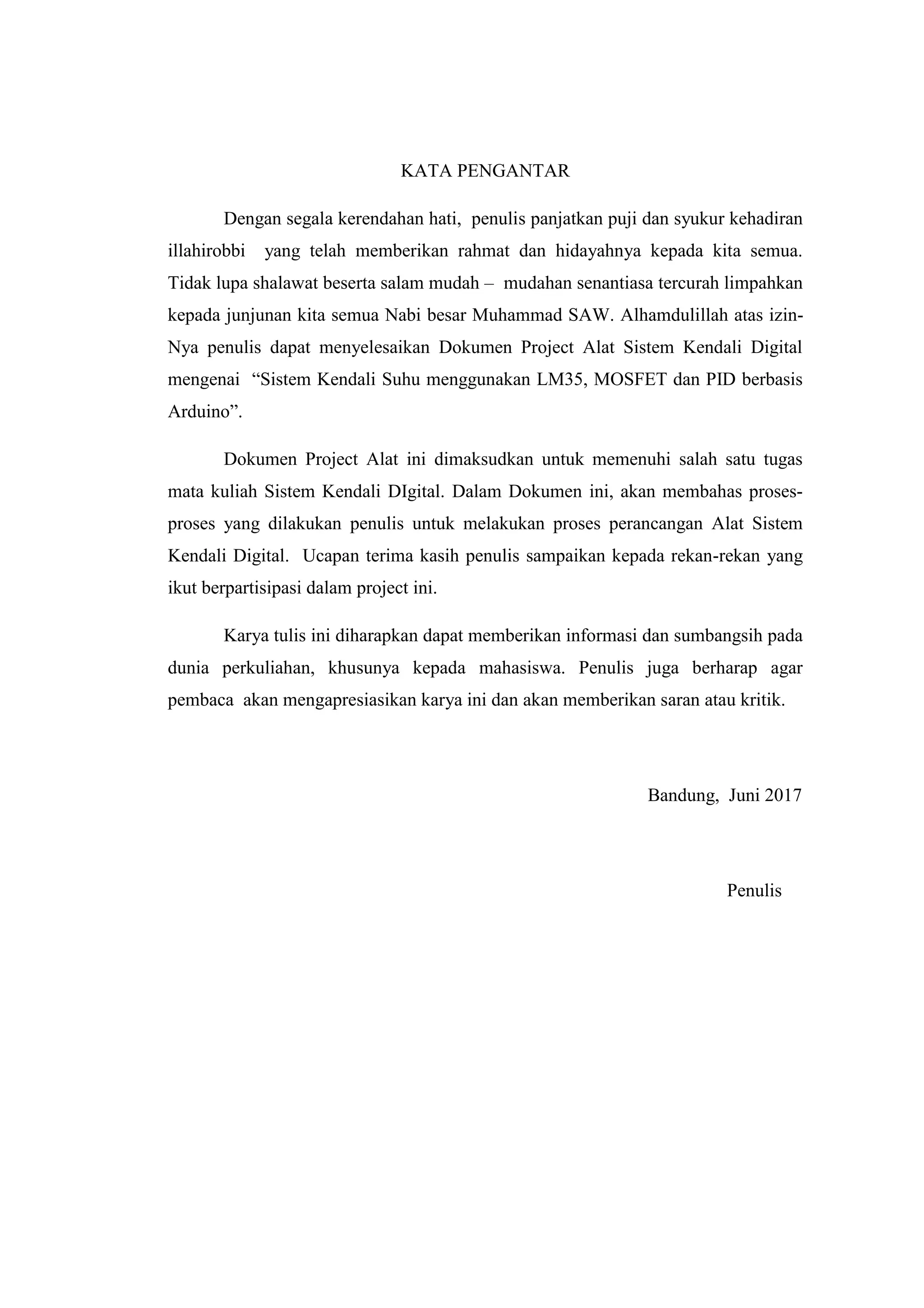 Nya penulis dapat menyelesaikan Dokumen Project Alat Sistem Kendali Digital