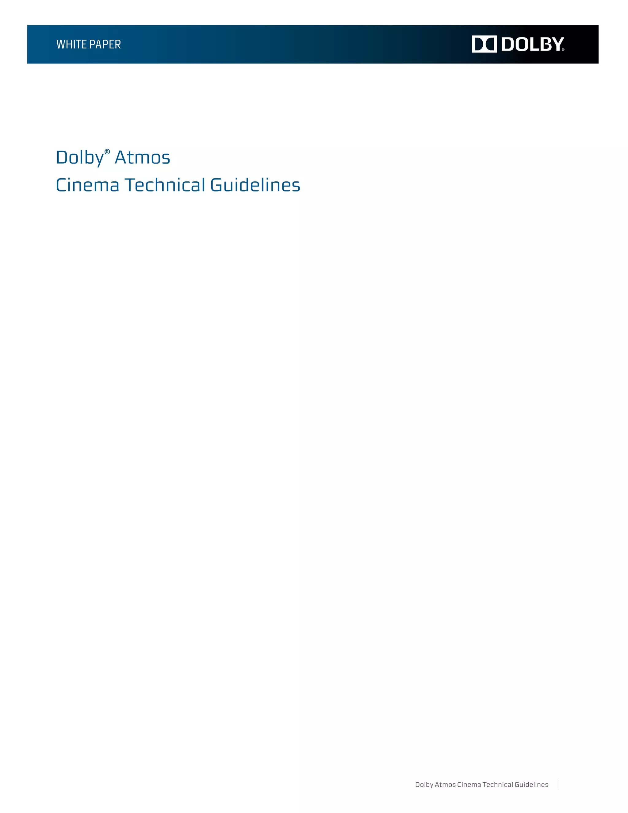 This white paper provides guidelines for installing and positioning loudspeakers in cinemas for Dolby Atmos playback. It recommends screen and surround speaker placement including elevation and aiming. Additional surround speakers are added closer to the screen and overhead to enable precise sound positioning. Optimal spatial resolution is achieved by keeping the angular distance between adjacent speakers below 30 degrees. Bass management redirects low frequencies from surrounds to subwoofers at the rear to maintain consistent timbre across all speakers.