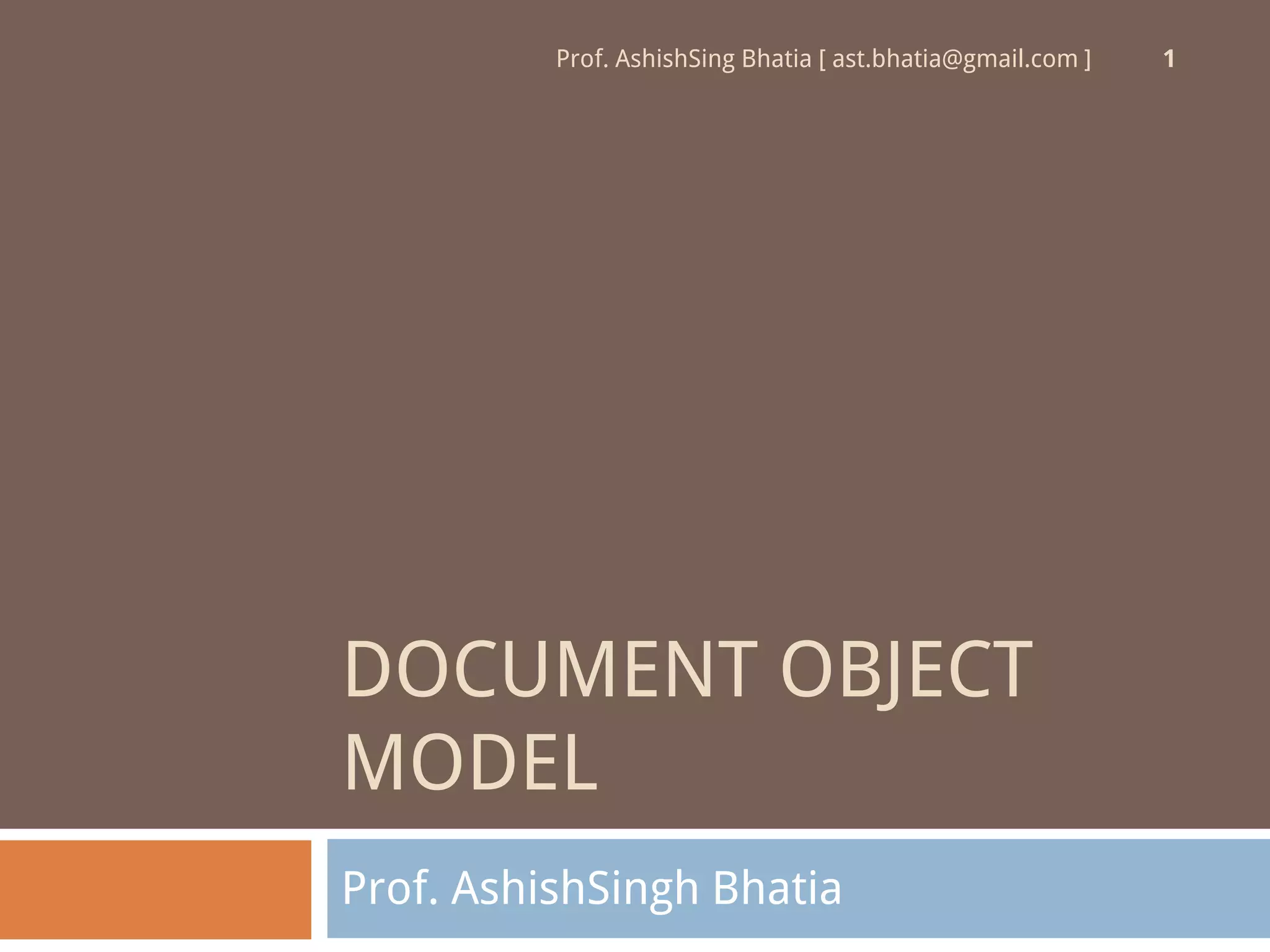 The document discusses the Document Object Model (DOM) and how browsers structure HTML pages in memory as objects. When a browser loads an HTML page, it assembles all the page elements as objects in memory. The DOM defines the JavaScript programming interface for accessing and manipulating these HTML elements. The DOM represents an HTML document as nodes and objects that have properties and methods. This allows JavaScript to access and update the content, structure, and style of a document dynamically.