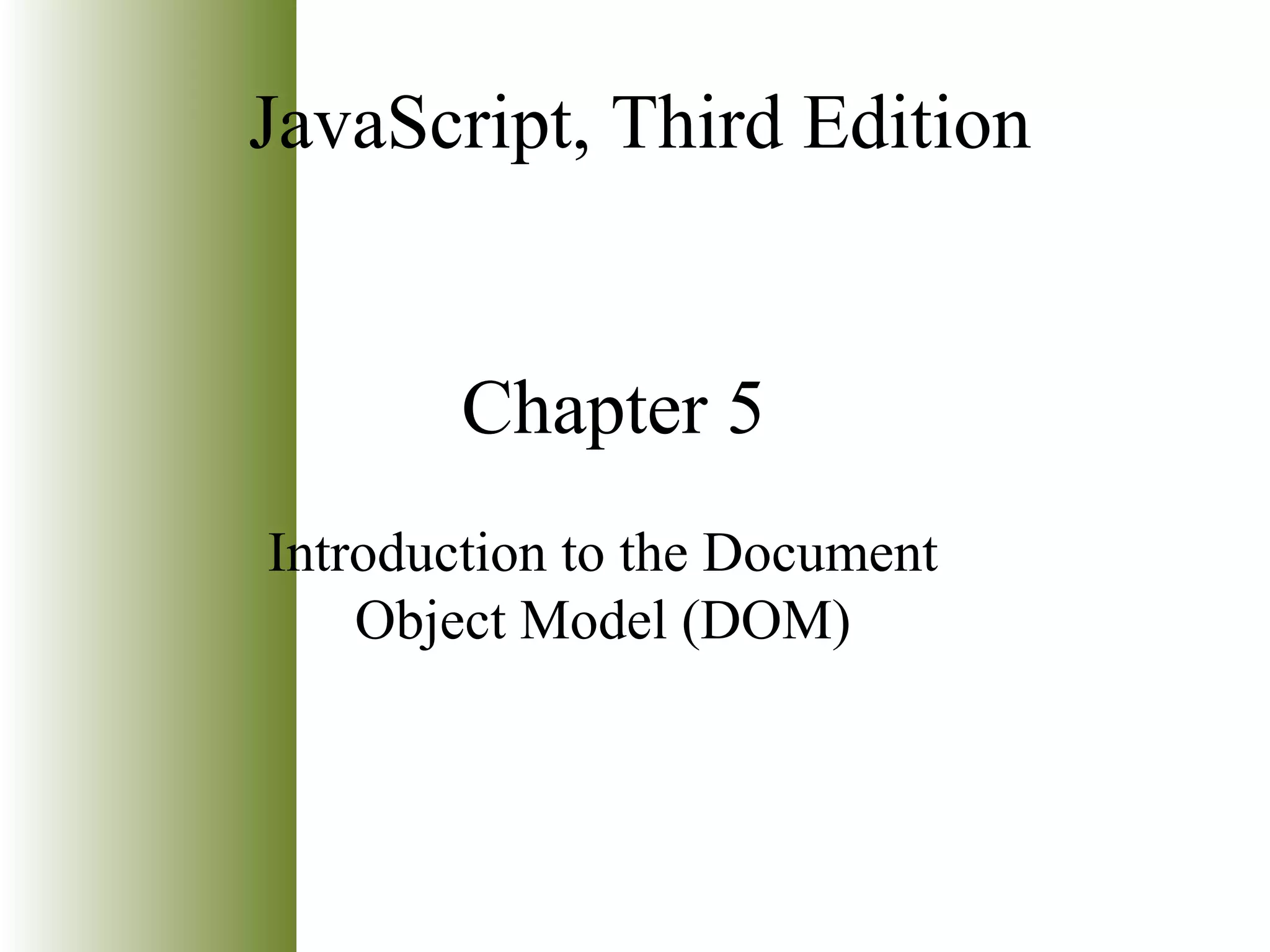 This chapter introduces the Document Object Model (DOM) which allows JavaScript to access and manipulate elements of a web page without reloading. It discusses how the DOM represents each element as an object, and how this enables dynamic effects like animations. It also covers how the Image object can be used to dynamically change images and create simple animations by modifying src attributes over time. Caching images in memory rather than redownloading them each time improves performance.
