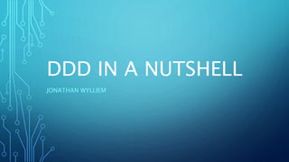 This document provides an overview of domain-driven design (DDD). It defines key DDD concepts like domain, model, ubiquitous language, bounded context, entities, value objects, aggregates, and services. The document explains that DDD is a software design approach for complex domains that models the domain and represents it in code. It focuses on exploring models collaboratively with domain experts and keeping the implementation tightly bound to the model.