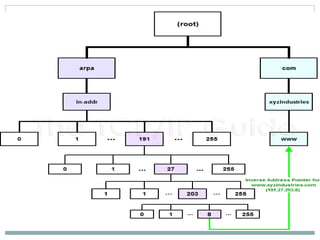 DNS is a globally distributed database that translates domain names to IP addresses. It consists of a name space organized in a hierarchical tree structure, servers that store data about parts of the name space, and resolvers that query servers to map names to addresses. The resolution process involves recursively querying servers at higher levels, like root and TLD servers, until reaching an authoritative name server that can provide the address. Caching improves performance by storing previous lookups.