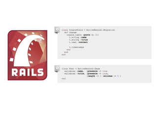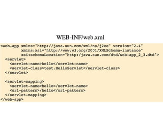 This document discusses domain-specific languages and their use in web application development. It describes how a typical web application involves layers like HTTP routing, controllers, templates, domain models, and data access. It then provides examples of different technologies that can be used to implement each layer, like Java Server Pages for templates or JPA for data access. The goal of domain-specific languages is to abstract away complexity and allow developers to focus on the essential aspects of the problem domain.