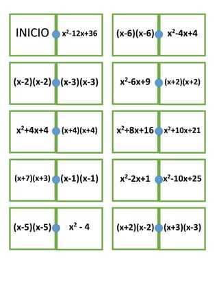 This document contains factorizations of quadratic expressions in the form of (x-a)(x-b). It lists the expressions and their factorizations, with the factors given in parentheses and separated by multiplication signs. There are no connecting words or sentences - just the expressions and their factorizations one after another.
