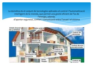 La domótica ésel conjunt de tecnologies aplicades al control i l’automatització