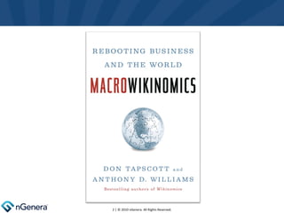 The document discusses the transition to an "Age of Networked Intelligence" driven by new technologies and collaboration. It argues that current institutions need to be "rebooted" according to five principles: collaboration, openness, sharing, interdependence, and integrity. True leaders are needed to drive innovation in institutional models, such as introducing collaborative healthcare systems and new models of citizen engagement. The transition involves uncertainty but is an opportunity for positive change.