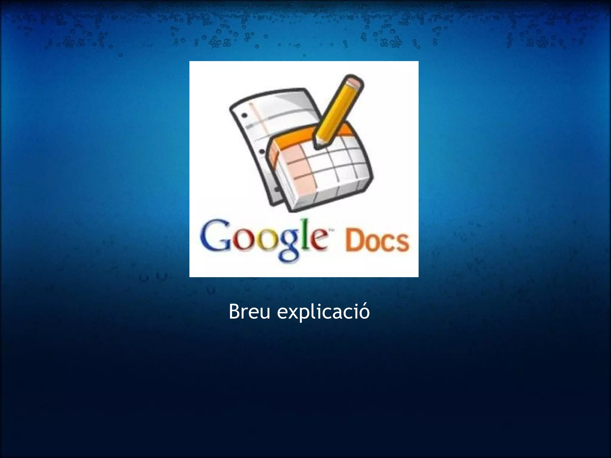 Google Docs és un senzill però potent processador de text, tot en línia. Ens permet crear nous documents, editar els que ja teníem o compartir-los a la xarxa. Els seus principals avantatges són: Els nostres documents s’emmagatzemen en línia : això ens permet accedir-hi des de qualsevol ordinador o connexió a Internet i compartir-los amb qui nosaltres vulguem, permetent fins i tot la seva edició. La gran quantitat de formats que suporta : amb el processador de text podrem editar els nostres documents de Word, Openoffice, PDF, documents de text…i guardar-los amb el mateix format o d’altres de diferents. Per poder utilitzar Google Docs heu de tenir un compte Google (compte de correu gmail ). Per crear-te'n un. pots anar a la pàgina principal de Gmail . 1. Qué és Google Docs?