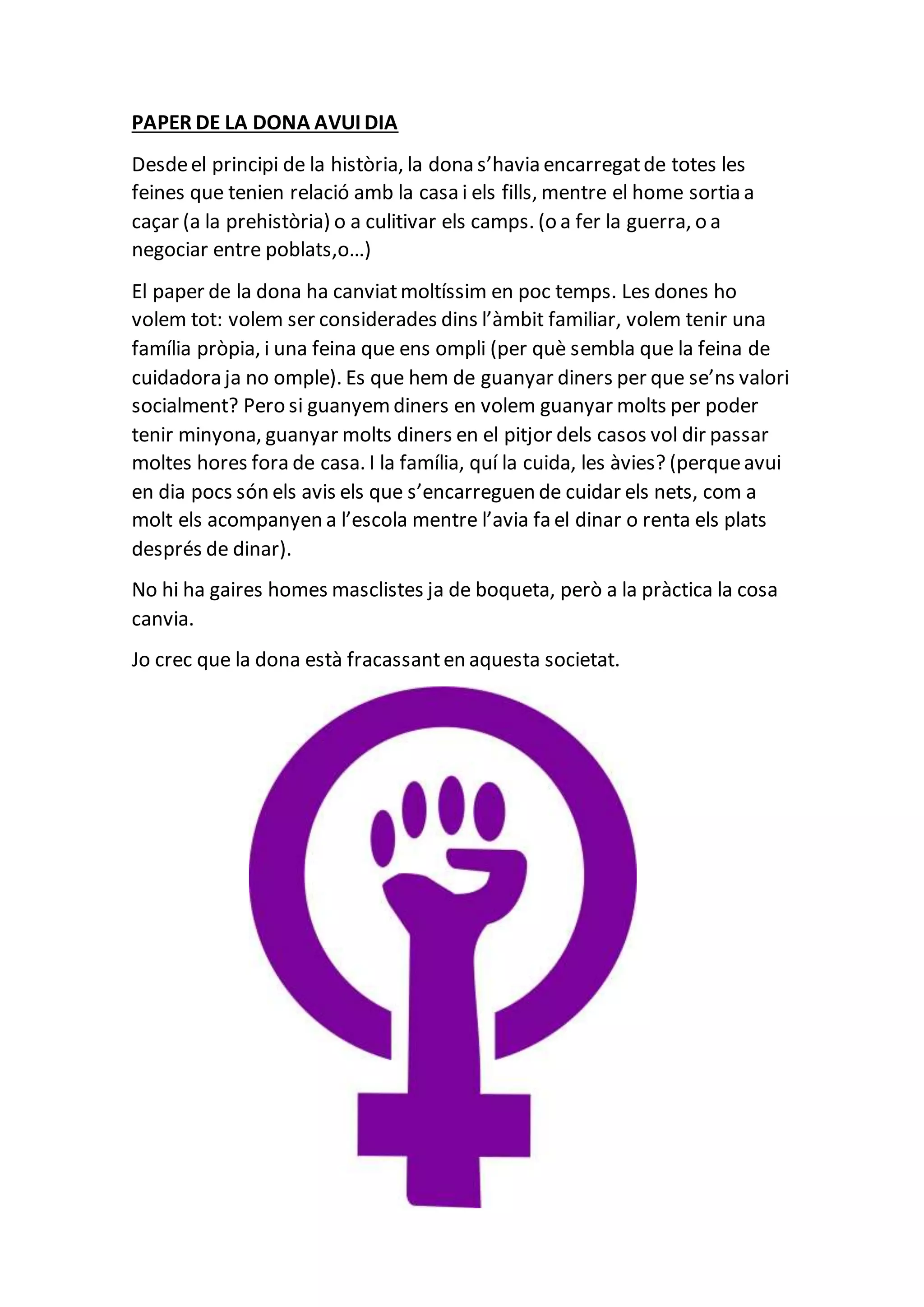 El paper de la dona ha canviatmoltíssim en poc temps. Les dones ho