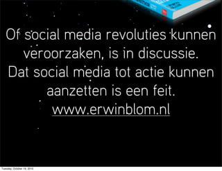revoluties kunnen veroorzaken, is in discussie. Dat social media tot actie kunnen aanzetten is een feit. www.erwinblom.nl Tuesday, October 19, 2010