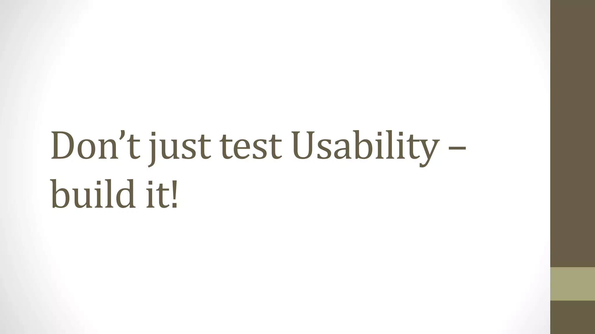 The document discusses the importance of usability engineering and designing for usability from the beginning. It provides definitions of usability and outlines the key steps in the usability engineering process, including concept planning, understanding needs, requirements analysis, and design/development. Throughout each step, it emphasizes applying best practices like user research, prototyping, and usability testing to prevent usability problems and ensure products are easy to use.