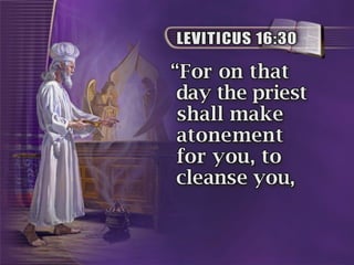 The document discusses the biblical Day of Atonement where the high priest would sacrifice a goat and send it away into the wilderness, carrying the sins of the people. It warns that sins have been permanently forgiven by Christ's sacrifice and should not be brought back through repeating past sins or dwelling on guilt. True freedom from sin is found by telling others about Christ's forgiveness.