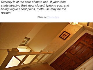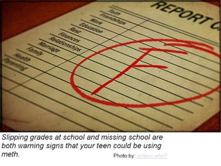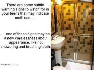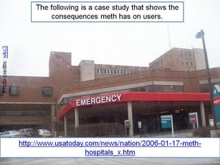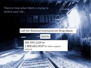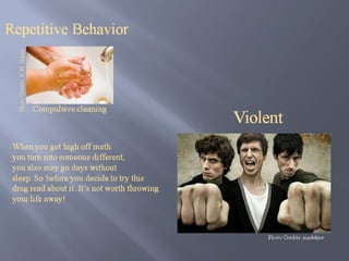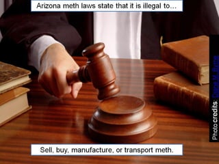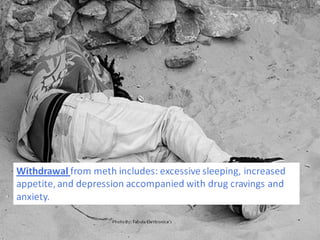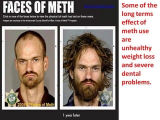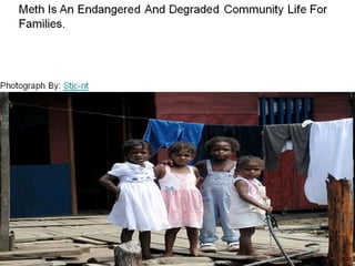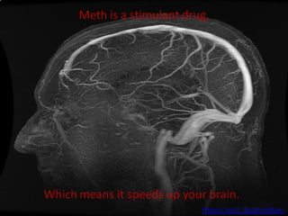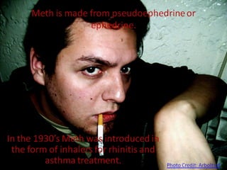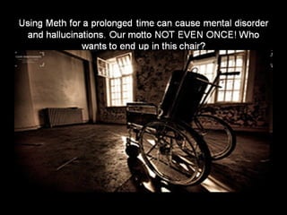 This document warns against using methamphetamines through a compilation of slides from students. It notes that using meth is "messy" and should be avoided, as evidenced by the tagline "Not Even Once." The message is inspired by an anti-meth public awareness campaign in Arizona.