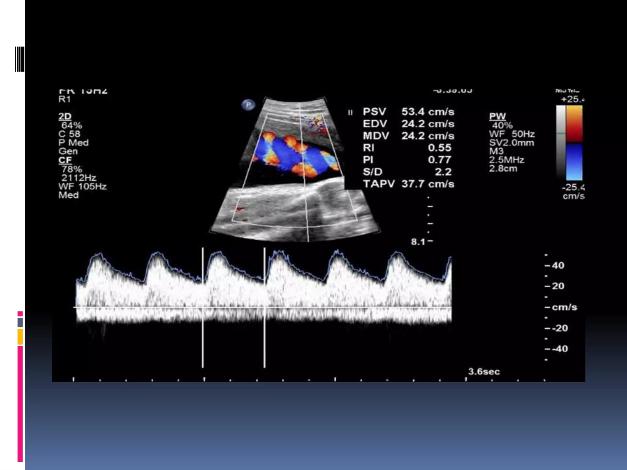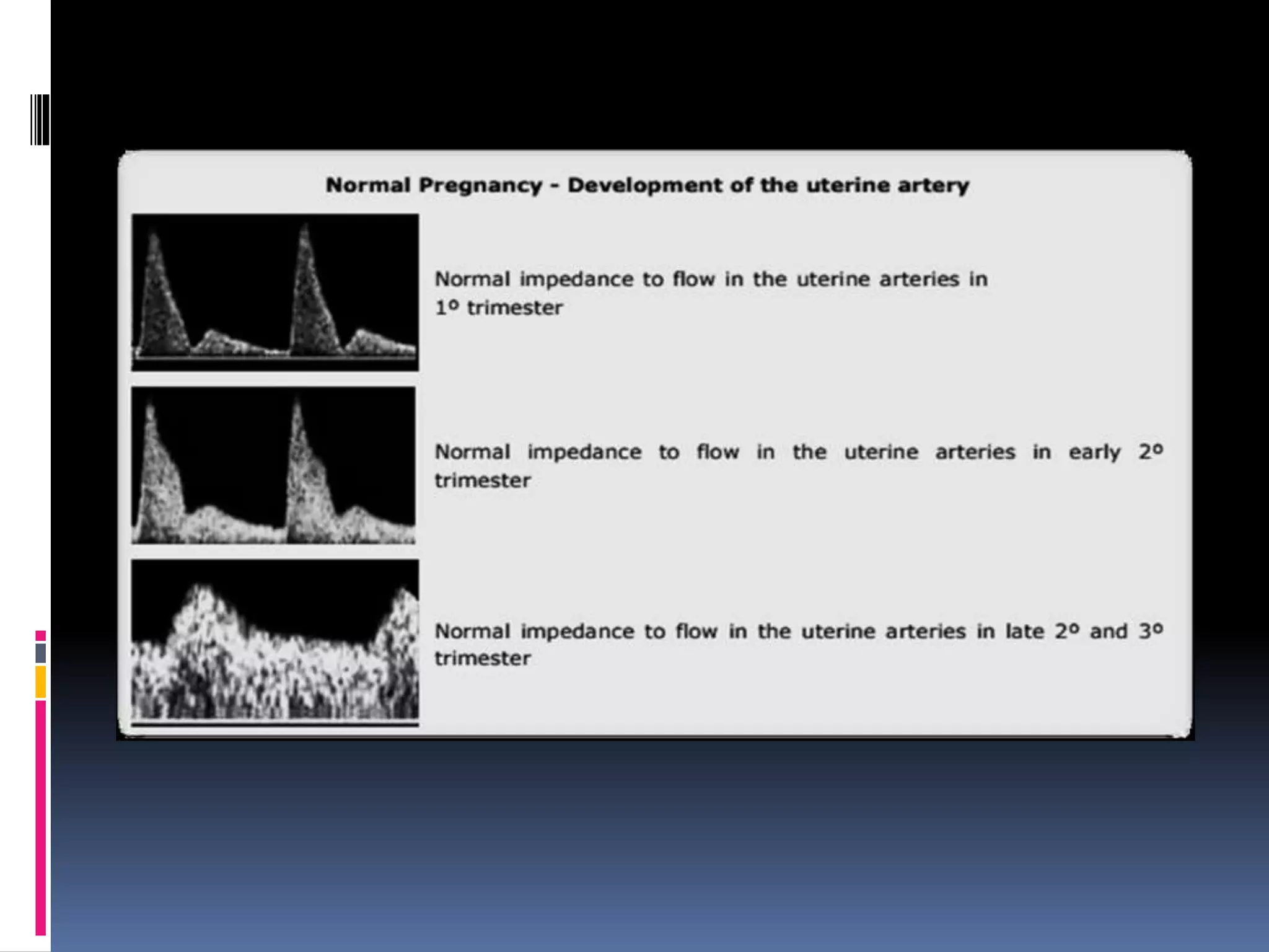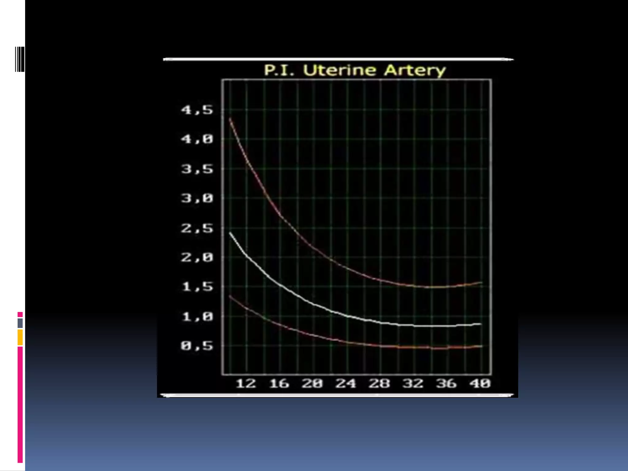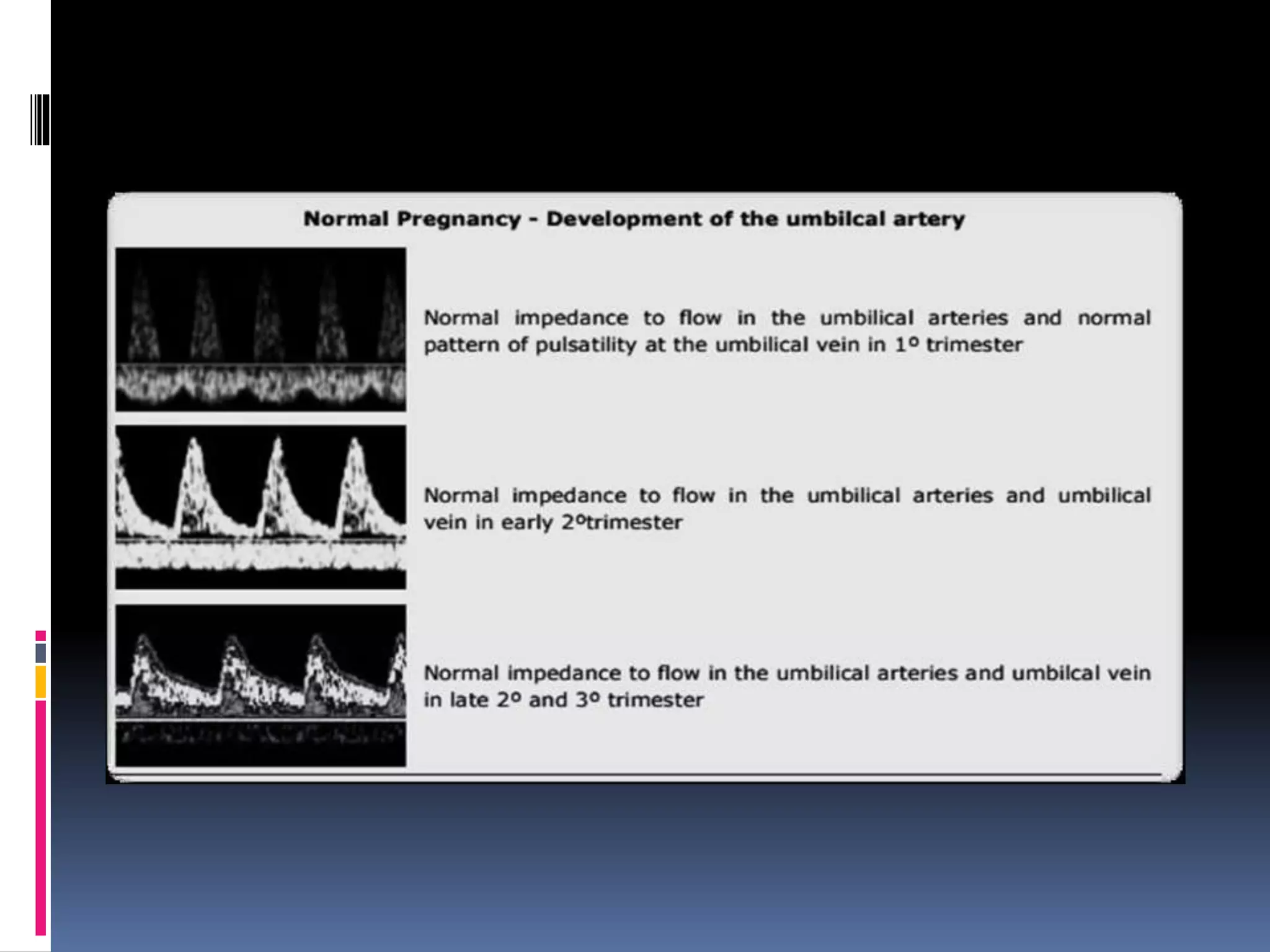 Doppler ultrasound is used in obstetrics to evaluate fetal growth and well-being. It assesses blood flow in the umbilical artery (placental circulation), middle cerebral artery (fetal circulation), and uterine arteries (maternal circulation). Abnormal Doppler readings include increased resistance and absent/reversed end diastolic flow in the umbilical artery, which indicate placental insufficiency and fetal growth restriction. The middle cerebral artery Doppler shows the brain-sparing effect in hypoxic fetuses. Together, Doppler ultrasound provides important information about the fetus's condition and helps time delivery.