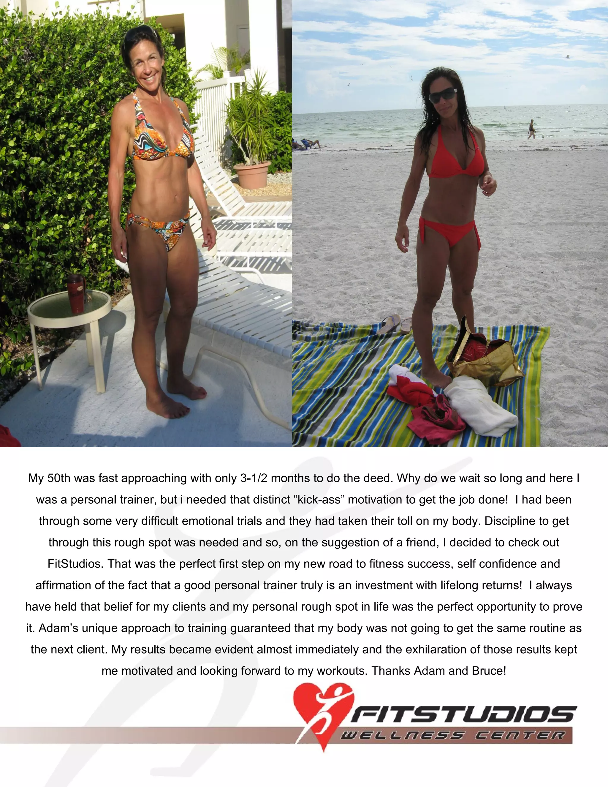 The author was approaching their 50th birthday with only 3.5 months left to get in shape. They had gone through emotional hard times that took a physical toll. On a friend's suggestion, the author decided to check out FitStudios for discipline and motivation. Their trainer Adam provided a unique approach that quickly yielded visible results, keeping the author motivated to continue working out.