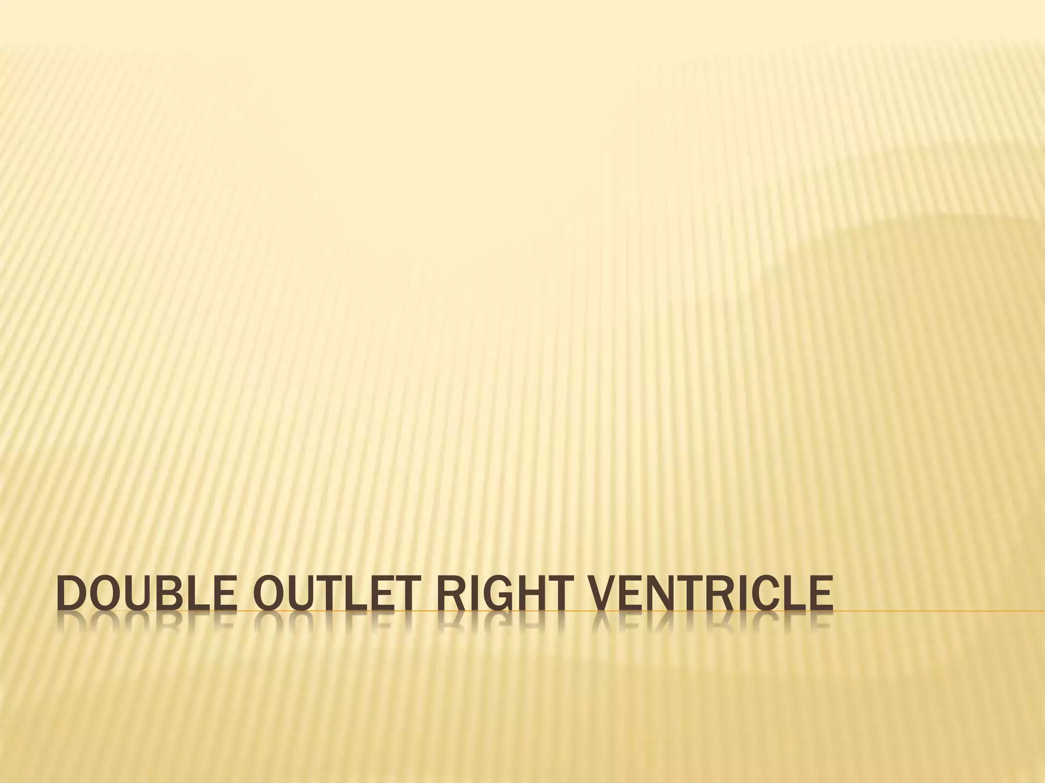 Double outlet right ventricle (DORV) was first described in 1793 and involves both great arteries arising wholly or partially from the right ventricle. The condition involves abnormalities in the development of the conus arteriosus. Repair techniques depend on factors such as the location of the ventricular septal defect and relationship between the tricuspid and pulmonary valves. Common repair methods include an intraventricular baffle technique or arterial switch operation with VSD closure for Taussig-Bing heart. Early survival rates for repair are over 95% however reoperation may be needed for baffle leaks or obstructions.