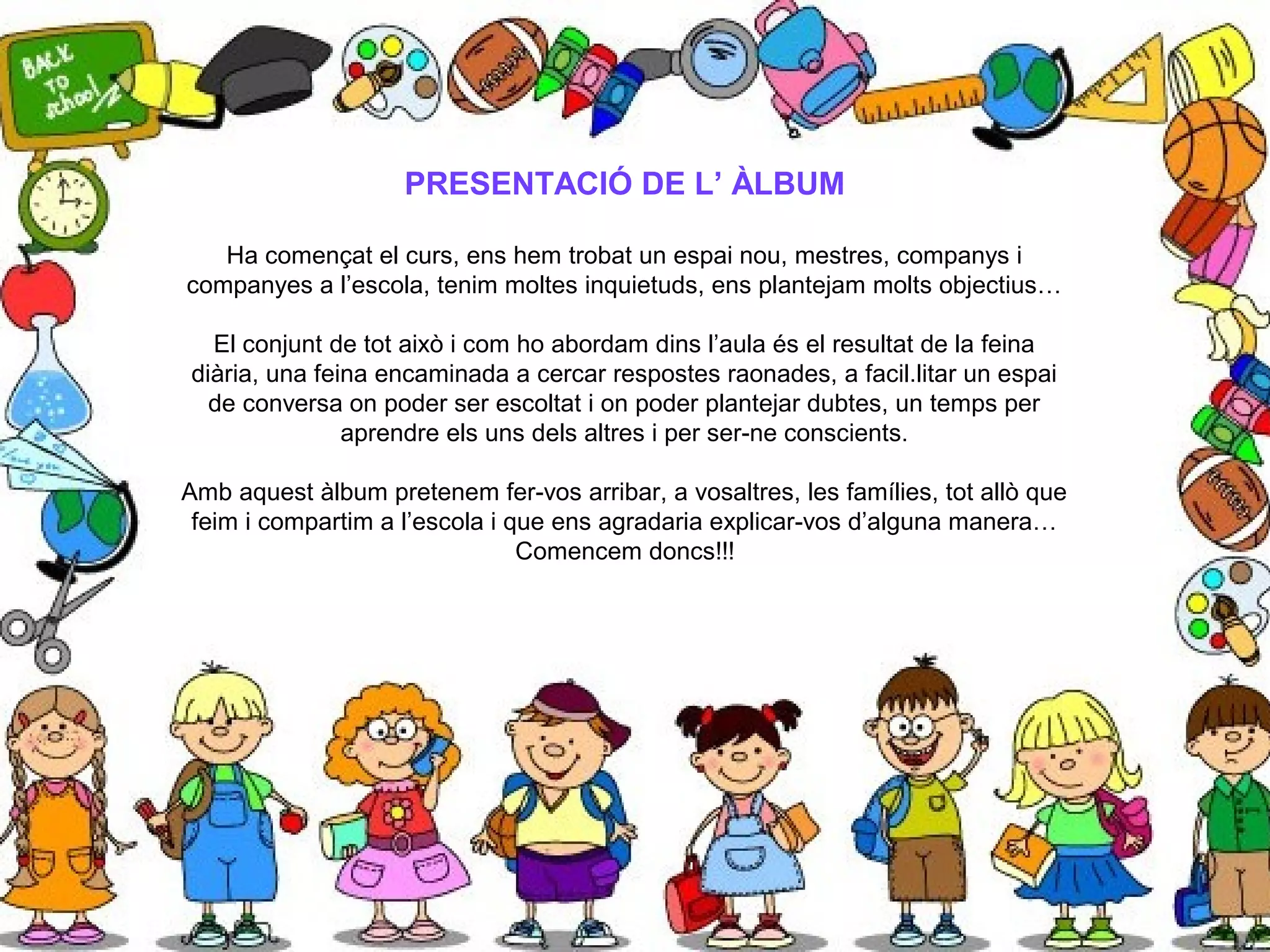 Amb aquest àlbum pretenem fer-vos arribar, a vosaltres, les famílies, tot allò que