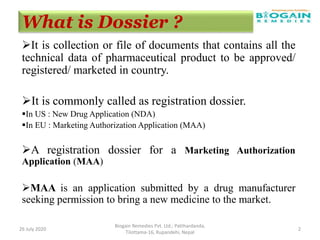 The document outlines the preparation of a Common Technical Document (CTD) for pharmaceutical product registration, detailing the requirements and structure for marketing authorization applications in various regions. It explains the specific modules of the CTD, including administrative information, quality data, and clinical trial results necessary for proving the drug's safety and efficacy. Additionally, it highlights the transition from paper CTD to the electronic Common Technical Document (eCTD), emphasizing improved processes and information management.