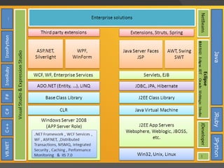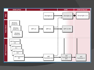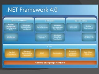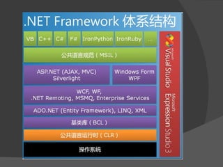 The document discusses various topics related to .NET Framework and C#. It provides definitions of concepts like framework, CLR, and comparisons between C# and other languages. It also includes code examples in C# and Java for calculating directory size recursively. Quizzes are included to test understanding.