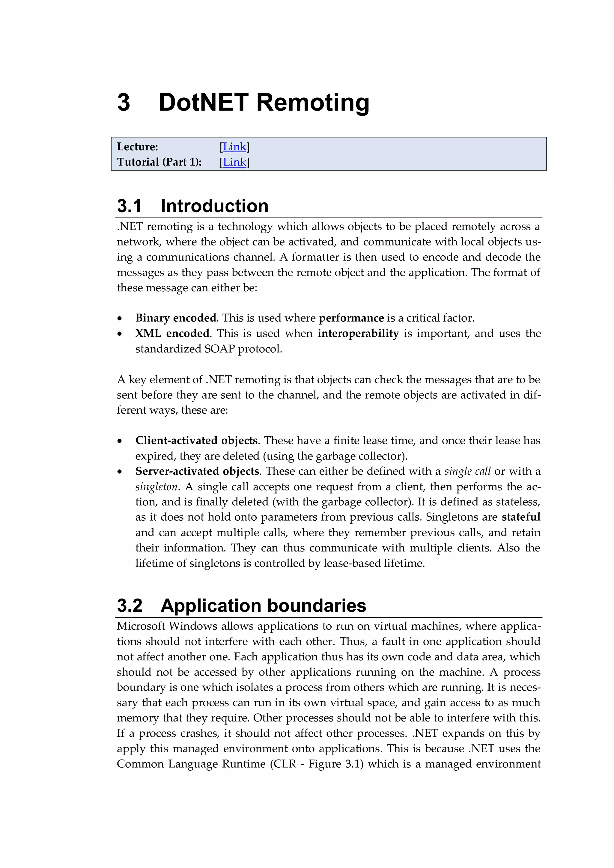 - The document provides details on remote objects, channels for message passing, and activation methods and gives examples of creating a remotable class.