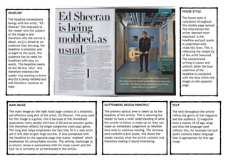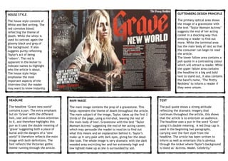 The document summarizes the layout and design of two magazine double page spreads from Kerrang! and Q magazines. Both magazines use similar techniques like pull quotes but differ in their use of color and style based on their target audiences. Kerrang! uses bright colors and consistent features to draw in younger readers while Q takes a more simplistic monochrome approach suitable for their older audience. The target audience greatly influences the design choices in how magazines present information to readers.