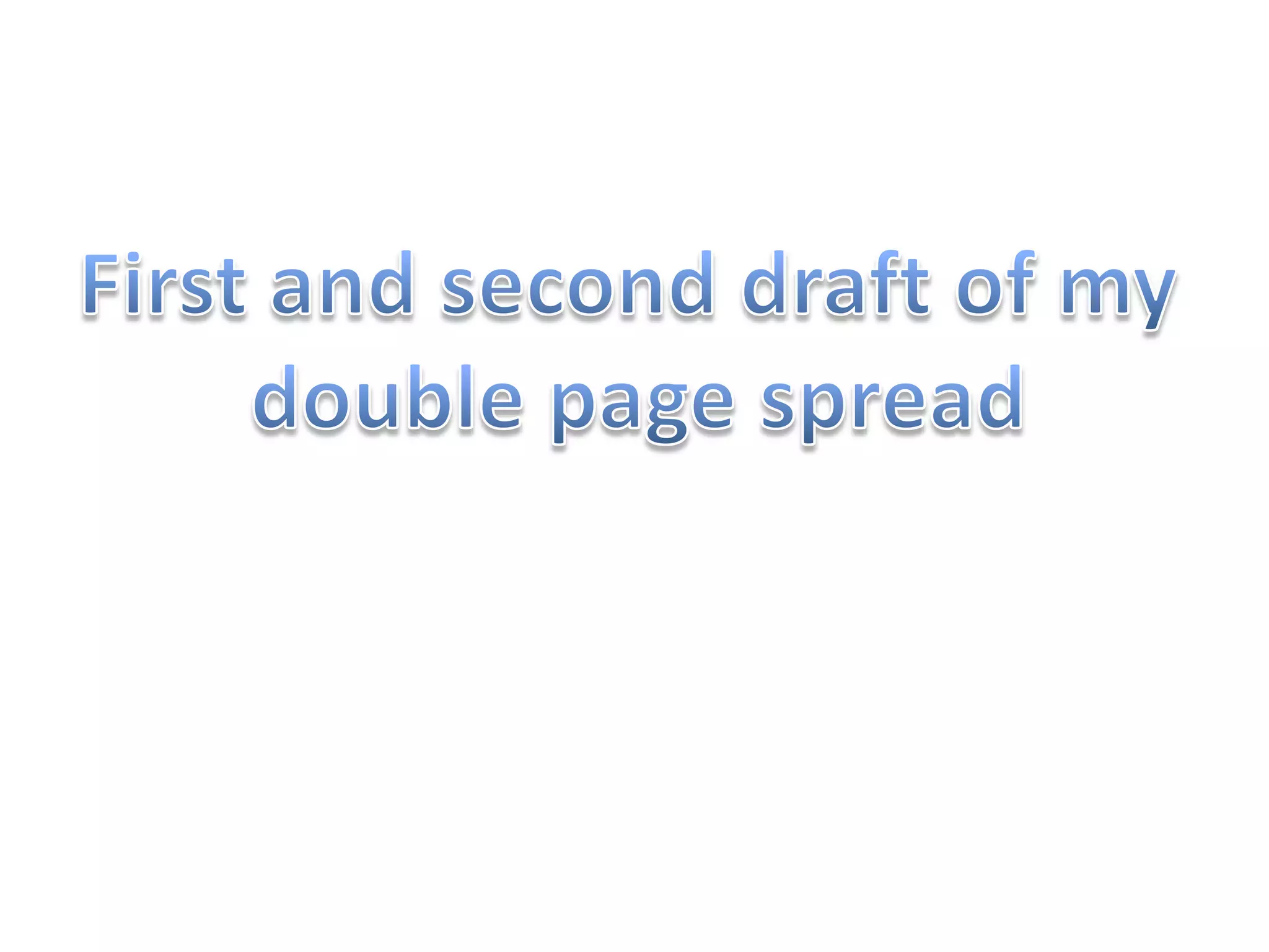 The document discusses drafts of a double-page magazine spread design. The first draft outlines placing a main image on the left and text on the right, with a large, red diagonal title/quote at the top. The second draft keeps this layout and adds a bold title, quote from the band, and introduction. Feedback on the second draft compliments the professional layout but suggests filling empty space above the image and changing the plain quote font for visual interest.