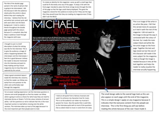 The document discusses the layout and design choices for a magazine double page spread interview. Key points include: