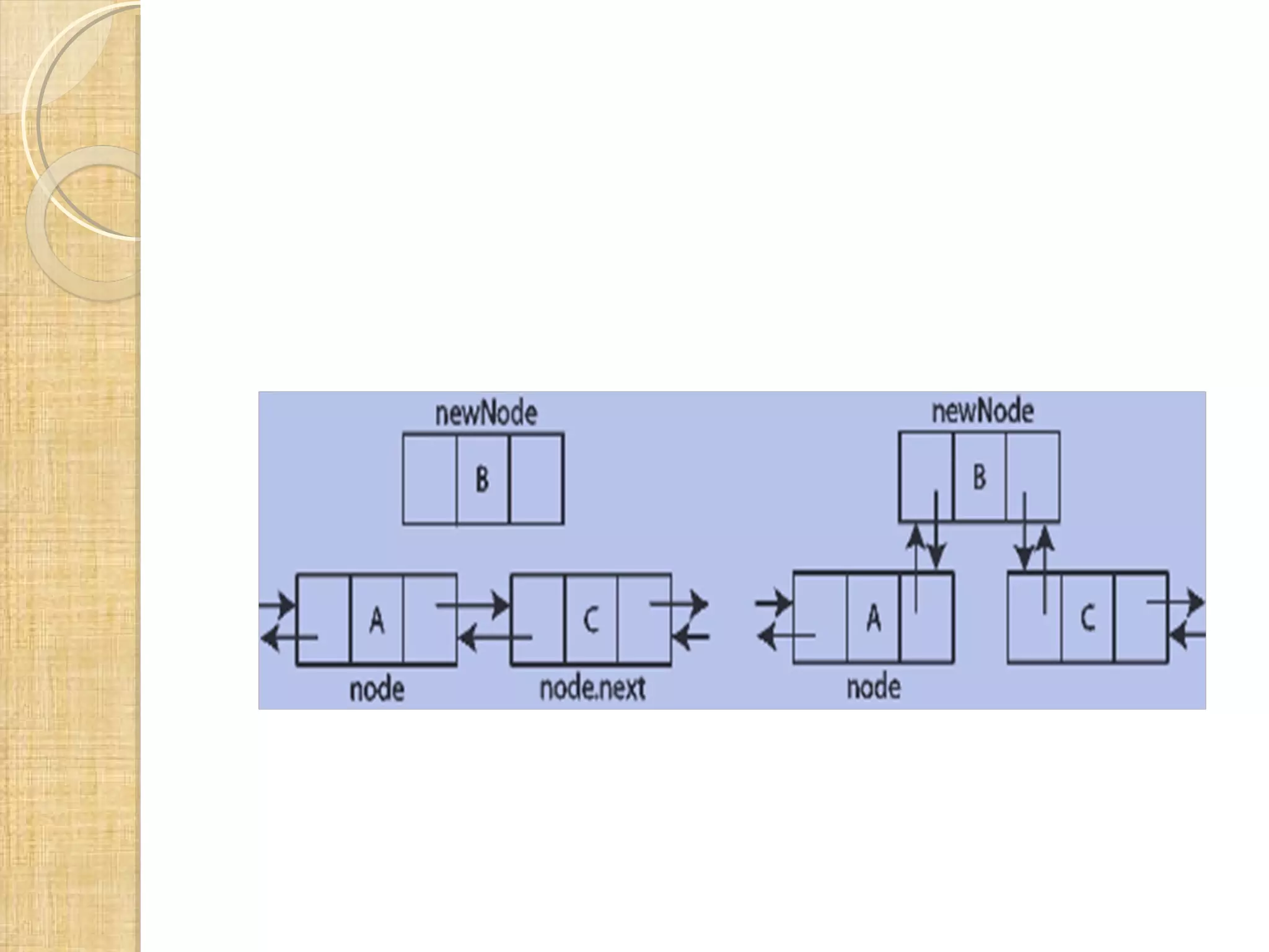 This document presents information on doubly linked lists including their representation, initialization, node creation, and various operations like insertion, deletion, and traversal. It discusses inserting and deleting nodes at the beginning or end of the list, as well as inserting before or after a specified node. Code examples are provided for initializing a doubly linked list and performing each operation.