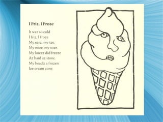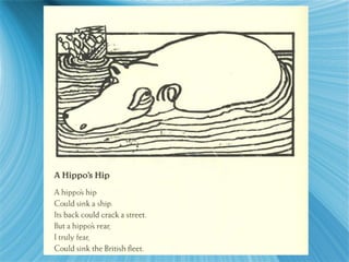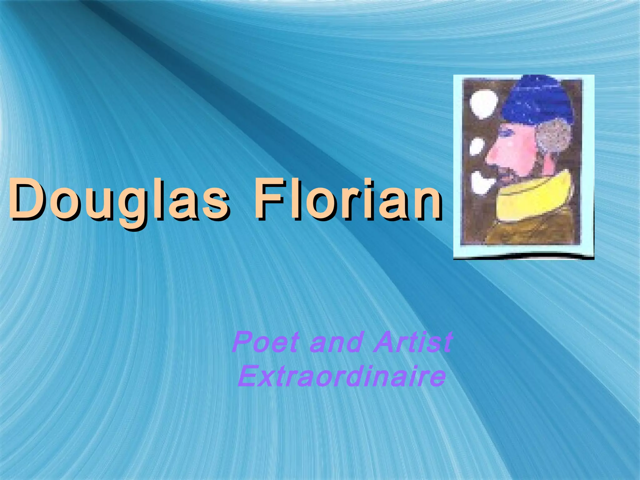 Douglas Florian is a New York-born poet and illustrator who has written and illustrated over 30 children's books. He had an early career as a cartoonist for The New Yorker magazine. Florian finds inspiration in nature and began writing poetry after finding a book of poems at a flea market. His poetry is lyrical, humorous, playful with words, and fact-filled on themes of school, animals, nature, and science. Florian encourages readers to try techniques from his poetry and illustrations like writing poems in shapes or being inspired by his illustrations.