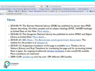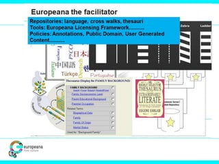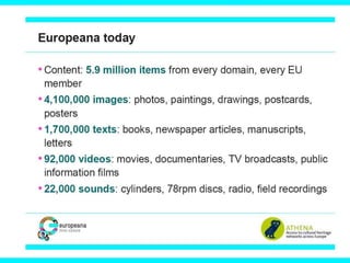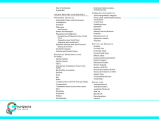 Judaica Europeana is a project to aggregate digitized content about Jewish life and culture in European cities onto Europeana, the European Digital Library. The project will contribute content on themes like migration, trade, architecture, and urban design. Partners include archives and museums from several countries. The goals are to make the content searchable and reusable, support research and education, and deploy vocabularies and tools to facilitate access and knowledge management regarding Jewish heritage in Europe.