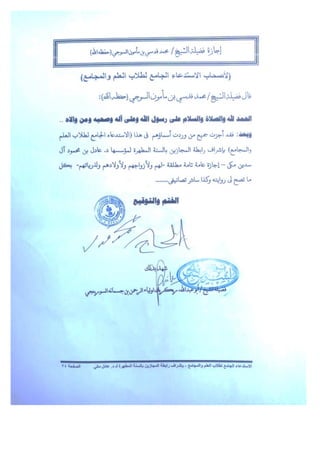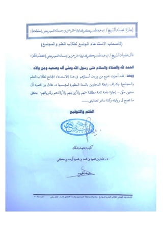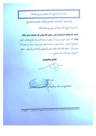 يتحدث عن مجموعة من العلماء الذين يروون الأحاديث والعلوم الشرعية، وذلك تحت إشراف الشيخ مكي عادل. يحتوي على قائمة من الأشخاص الذين حصلوا على إجازات في مختلف الفروع العلمية، مشيراً إلى بعض المصادر والأعمال المهمة في هذا المجال.